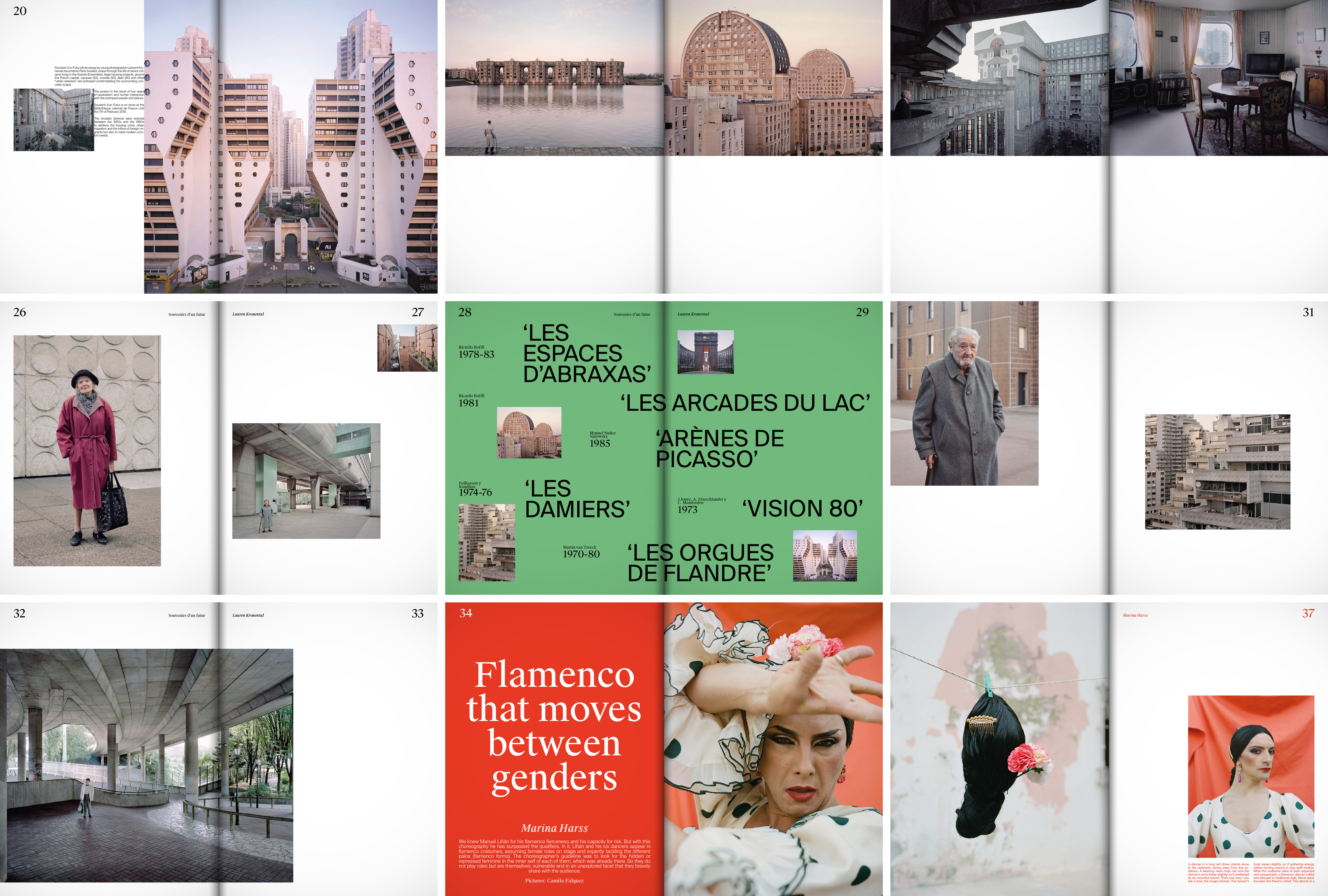 The cover and opener concept comes from the idea that Javier Limón is both a silent observer of tradition and a re-interpreter; as if he had a time machine, we see contemporary typography in the middle of Spanish traditional drawings.